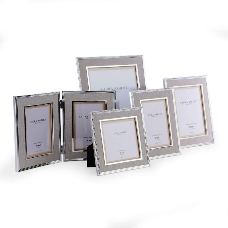 Завдяки посрібленій металевій рамі, облицьованій натуральною лляною тканиною та рельєфними бісером, елегантна подвійна фоторамка Harrison від Laura Ashley на шарнірах ідеально підходить для демонстрації ваших найцінніших зображень. Стримана розкіш цієї фоторамки зі срібла та льону прикрасить будь-який інтер’єр.