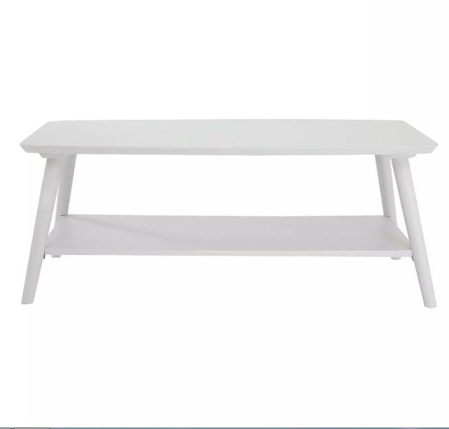Гарний кавовий столик світло-сірого кольору, столик виконаний в стилі мінімалізму і доповнений полицею знизу.
