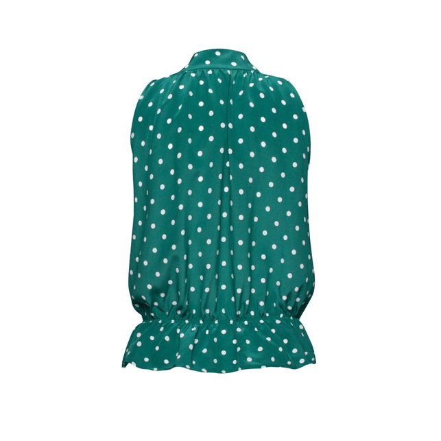 Елегантний шовковий топ зеленого кольору в білий горошок від ТМ K&A дає унікальну можливість змінювати свій образ протягом дня. Довгі зав'язки на горловині можна зав'язувати різними способами - ззаду, збоку або спереду - як вам захочеться. Його можна купити для прогулянок і романтичних зустрічей. Відкриті плечі, вільний крій з гумкою на талії, красивий бант на шиї - все це підкреслює струнку і жіночну фігуру. Топ зшитий з натурального шовкового крепдешину, легкого і стійкого до зім'яття матеріалу. Він прекрасно поєднується з брюками, прямою спідницею, туфлями на низькому або високому каблуці.