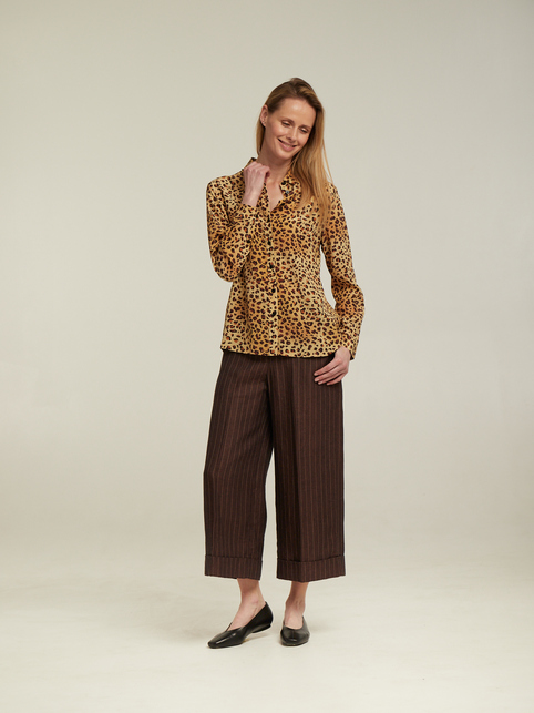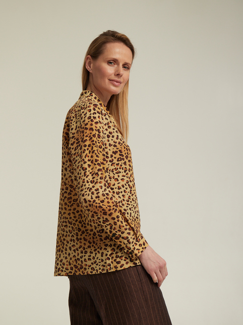 Дивовижний леопардовий принт давно став класичним, а тому завжди актуальний. Саме тому блузка від K&A, виконана з золотистого шовку з коричневим візерунком хижого звіра, надає своїй власниці ефектний вигляд, впевненість в своїх силах та виділяє її з натовпу. Фасон виробу приховує недоліки фігури та демонструє переваги. Легкий крепдешин не обмежує руху, дарує відчуття комфорту та свободу дій. Блуза відмінно поєднується з класичними піджаками, штанами та спідницями фасону "олівець". Оригінальність та класика, ефектний вигляд та можливість створювати стильні образи – все це відноситься до красивої і якісної моделі від бренду K&A.