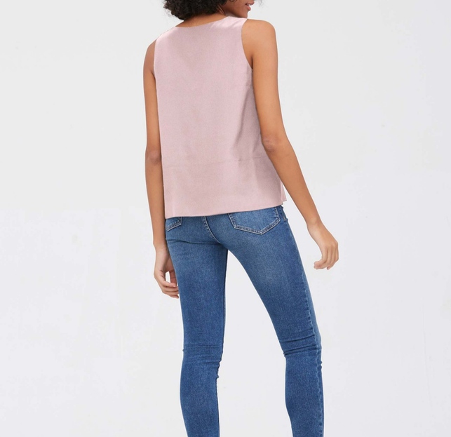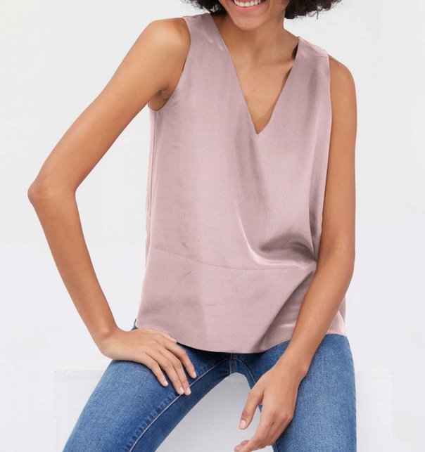 Елегантна блузка-топ від K&A виконана з якісного шовку. Приємний до тіла, гладкий матеріал із легким глянцевим блиском виглядає ефектно та дорого, а вільний крій не стискує рухів. Безперечною перевагою є ніжний відтінок лотоса, який освіжає й дозволяє візуально скинути кілька років, роблячи жінку молодшою та чарівною. Блузка має V-подібний виріз, який робить шию зорово довшою, а володарку – граціознішою. У такому виробі ніколи не відчуття дискомфорту навіть у найспекотніший день – блузка стане улюбленою річчю в гардеробі, поєднуючись із джинсами, шортами, спідницями та брюками.