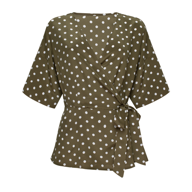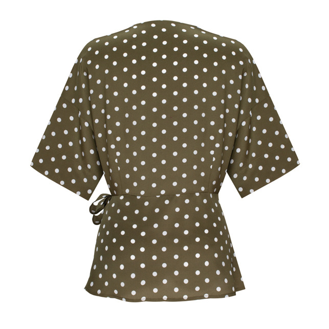 Елегантна шовкова блуза на запах стане вашим надійним супутником в повсякденному житті. ТМ K&A повертає в ужиток баску - елемент, що надає вашій фігурі надзвичайну жіночність. Глибокий V-подібний виріз і зав'язки збоку на талії надають силуету витонченість. Гарний оливковий з невеликим білим горохом відмінно виглядає в поєднанні практично з будь-якої колірної гами, що дозволить вам комбінувати цю блузу з більшістю предметів вашого гардеробу. Рукав блузи широкий до ліктя, довжина до середини стегна. Придбати цю блузу можна в нашому магазині за привабливою ціною.