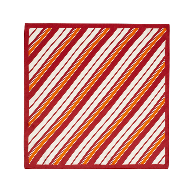 Приємна на дотик хустка з шовку Малбері стане відмінним придбанням. Виконана в благородних відтінках червоного, білого та жовтого, вона виглядає дуже привабливо. Такий виріб в смужку, розташовану по діагоналі, стане чудовою прикрасою та елементом декору. Ефектний вигляд досягається за рахунок вдалого поєднання кольорів. Крім того, матеріал, з якого виготовлено виріб, відрізняється міцністю, вишуканістю та приємною текстурою. Придбати таку річ дуже просто, адже вартість хустки невисока, а радість буде дійсно великою. Виріб можна сміливо подарувати в якості презенту рідним та близьким, і вони неодмінно залишається задоволені.