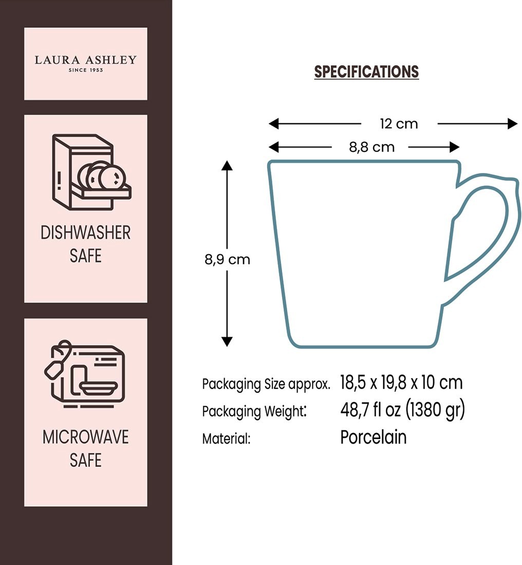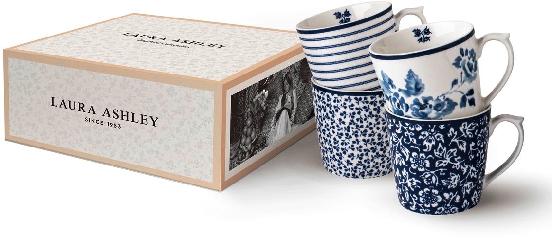 Ранкове пробудження за чашкою теплої кави з цими 4 порцеляновими кухлями з колекції Blueprint від Лори Ешлі. Завдяки об’єму 320 мл ви можете довго насолоджуватися першою чашкою кави. Дуже добре, якщо ви подасте чашку чаю або кави на щедрий недільний сніданок. Стильні сині дизайни дарують відпочинок і привносять стильну елегантність на кухонний стіл.Порцеляна.