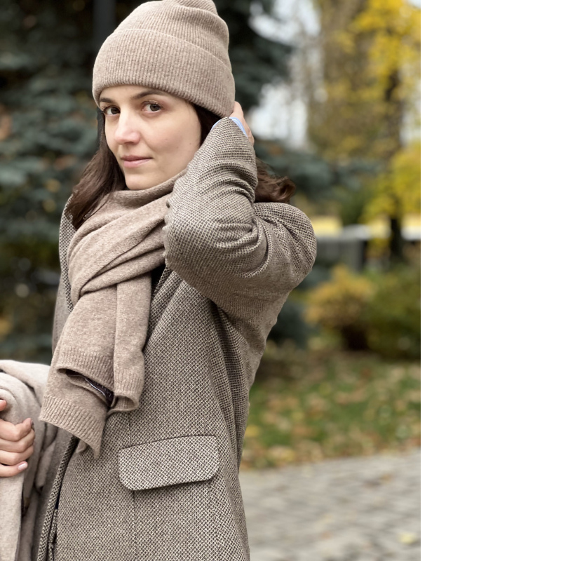 Ніжна шапка у класичному бежевому кольорі виконана з преміальної пряжі — 50% кашеміру та 50% вовни, що забезпечує виняткове тепло, м’якість і комфорт. Модель має фактурну в’язку «в рубчик» і стильний підворот, який ідеально тримає форму. Елегантна, універсальна та надзвичайно приємна тактильно — ця шапка стане вашим незамінним аксесуаром у холодний сезон.