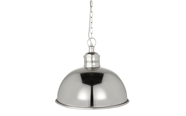 Люстра зі скляним, широким плафоном сріблястого кольору і великим кріпленням зверху.