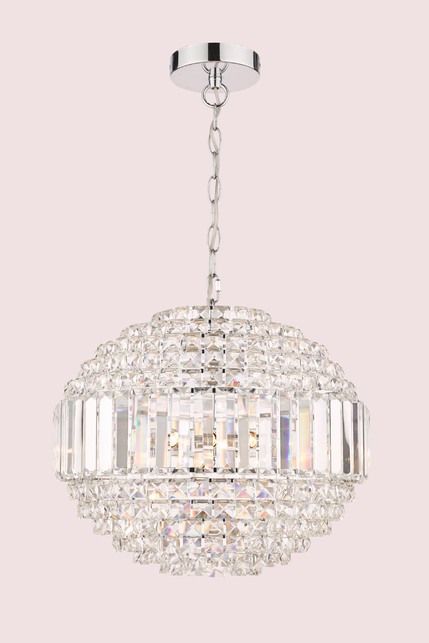 Розкішна люстра зі скла Vienna з колекції Laura Ashley. Люстра круглої форми на довгому ланцюжку, яку можна регулювати індивідуально під висоту приміщення. Виглядає дуже стильно і сучасно, підходить для вітальні, їдальні, кабінету або спальні. Красива люстра завершує цілісність інтер'єру Вашого будинку.