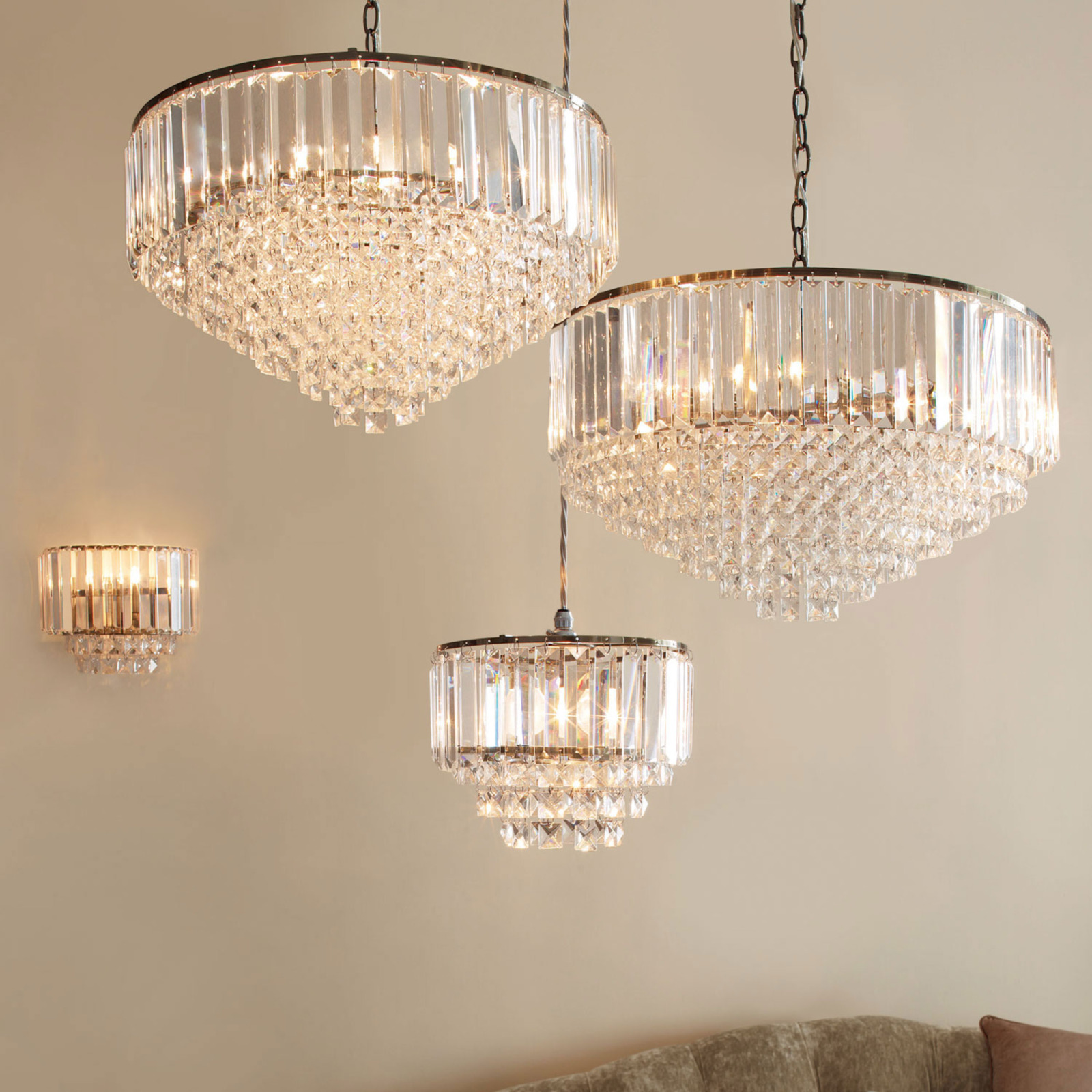 Така люстра підійде для кімнат з високою стелею та інтер'єром у класичному стилі, також дуже гарно виглядатиме в кімнаті з великою кількістю дзеркал.
