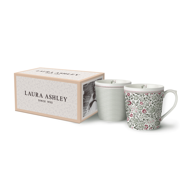 Ефектні чашки з міцної порцеляни стануть чудовим варіантом для щоденного використання. Як і вся продукція від бренду Laura Ashley, вони поєднують у собі витонченість, практичність та високу якість. Такі чашки можуть стати чудовим подарунком, оскільки мають усі необхідні якості, а ошатна упаковка принесе радість одним своїм виглядом. Чашки мають стильну форму та розмір, а також доповнені ефектним декором: одна прикрашена ошатним квітковим візерунком, а друга прикрашена смужкою. Витончена ручка довершує картину, та робить чашки дійсно красивим та практичним посудом для всіх випадків життя.