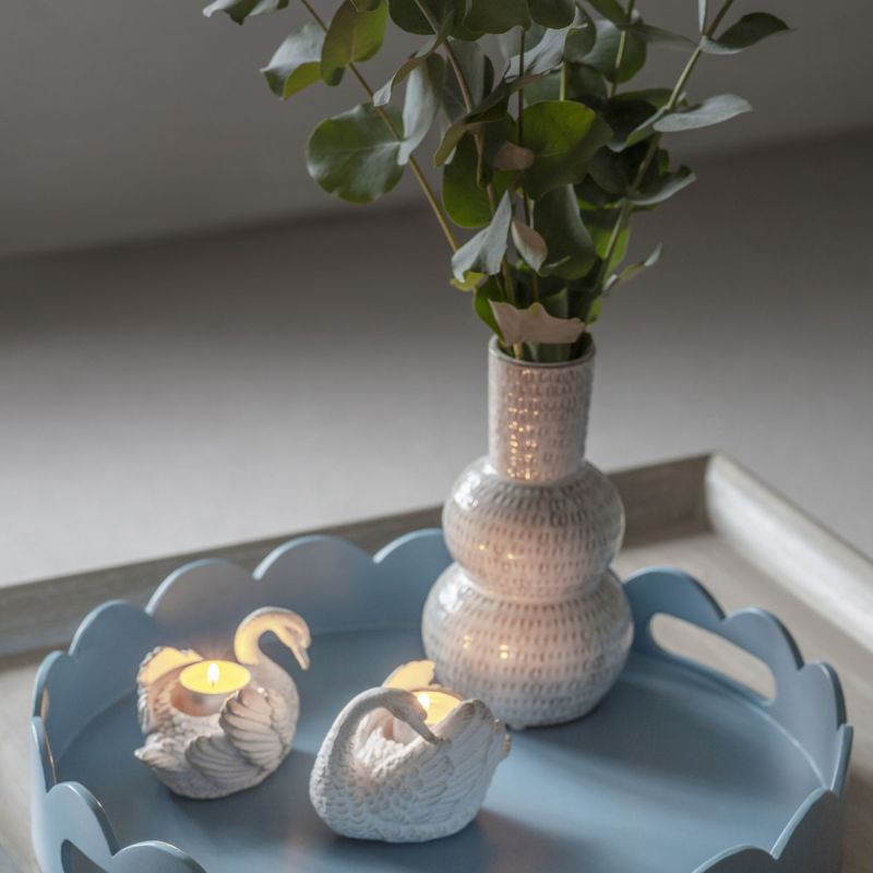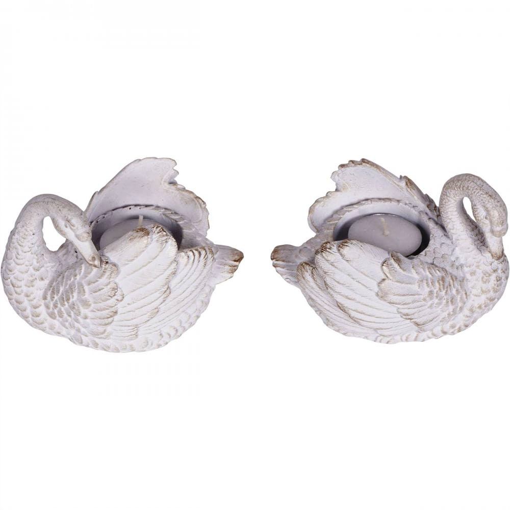 Цей набір із двох свічників у формі лебедів Swan, пофарбованих у потертий білий колір, додасть вишуканості та чарівності вашому інтер'єру. Кожен свічник має висоту 8 см та призначений для стандартних чайних свічок. Вони стануть чудовим доповненням до вашої спальні, надають їй затишку та ніжність. Крім того, це чудовий вибір як подарунок для подруги на її день народження або інший особливий день.