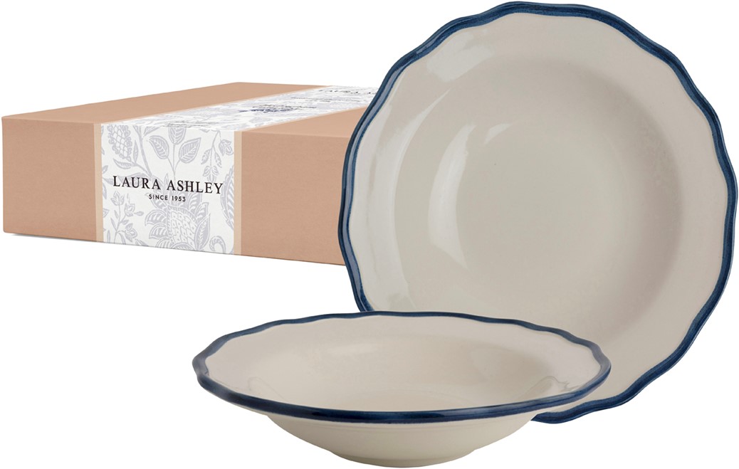 Доповніть сервірування столу тарілкою Laura Ashley Hedingham 22,5 см. Ця стильна тарілка з класичним фестончастим краєм і синіми акцентами, розписаними вручну, ідеально підходить для супів, рагу та інших ситних страв. Тарілка ідеально поєднується з посудом Hedingham додаючи вишуканості будь-якому сервіруванню столу.
