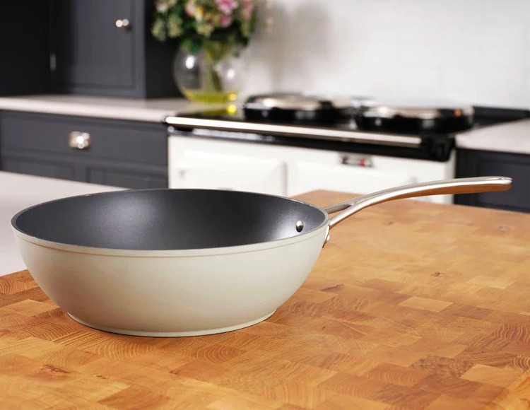 Сумісний з усіма типами плит, включаючи індукційні, і безпечний для духовки до 180°C, цей вок є універсальним і стильним.