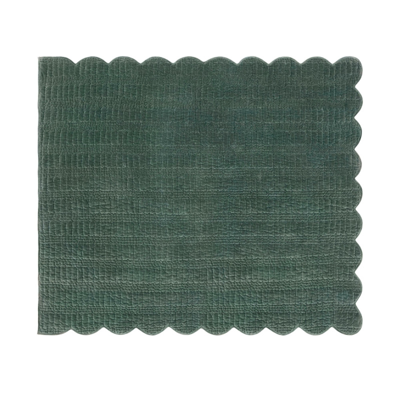 Виготовлене з чудового м’якого оксамиту, який виглядає так само розкішно, як і виглядає, це оксамитове покривало Laura Ashley із гребінцями випромінює розкіш та елегантність. Складні фестончасті краї та ручні шви додають витонченості, створюючи м’який, плавний силует навколо ліжка. Це покривало, доступне в приголомшливому темно-оливковому кольорі, ідеально підходить для створення затишної, стильної атмосфери. Це водночас виразний предмет і практичне доповнення, яке дарує тепло й комфорт, перетворюючи простір на спокійний відпочинок.