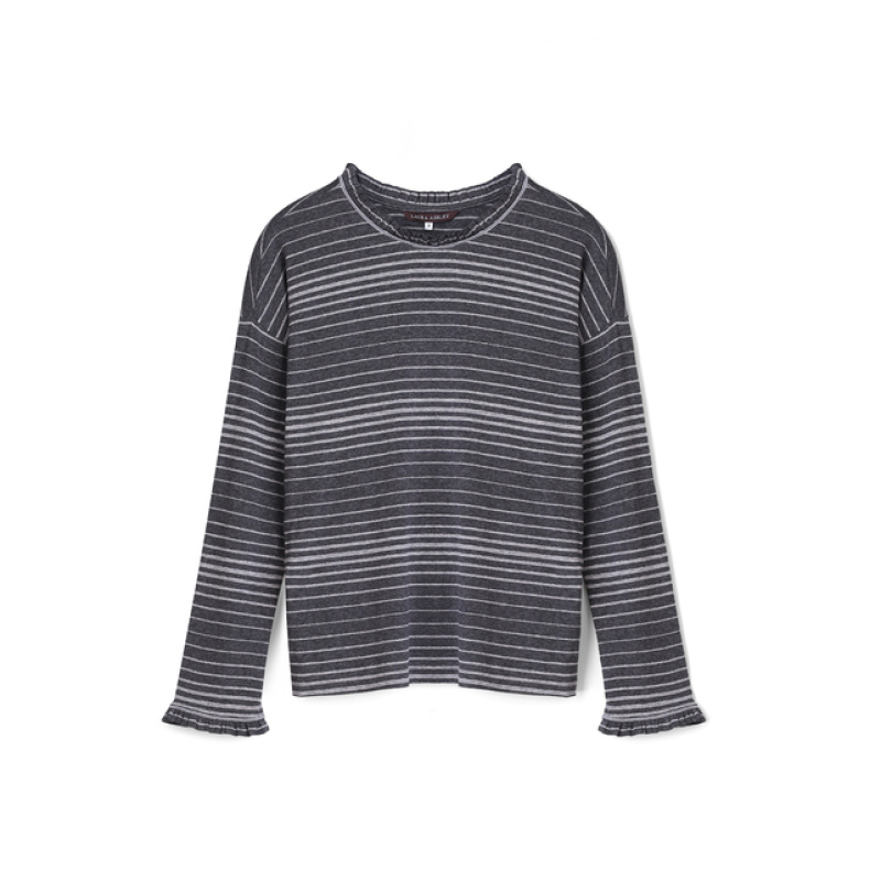 Жіноча футболка Лора Ешлі у сіру смужку — це поєднання комфорту, трендового крою та жіночних деталей. Модель має злегка оверсайзний силует і приспущену лінію рукава, що додає легкості та невимушеності образу. Оздоблення у вигляді маленьких рюш-оборок по низу рукавів та горловині надає футболці витонченого шарму та підкреслює її унікальність. Натуральний склад із бавовни та шовку з додаванням еластану забезпечує м’якість, приємність до тіла, еластичність і зручність у щоденному носінні. Така футболка чудово комбінується з джинсами, шортами чи спідницями, підходить як для повсякденного стилю, так і для створення більш романтичних образів.