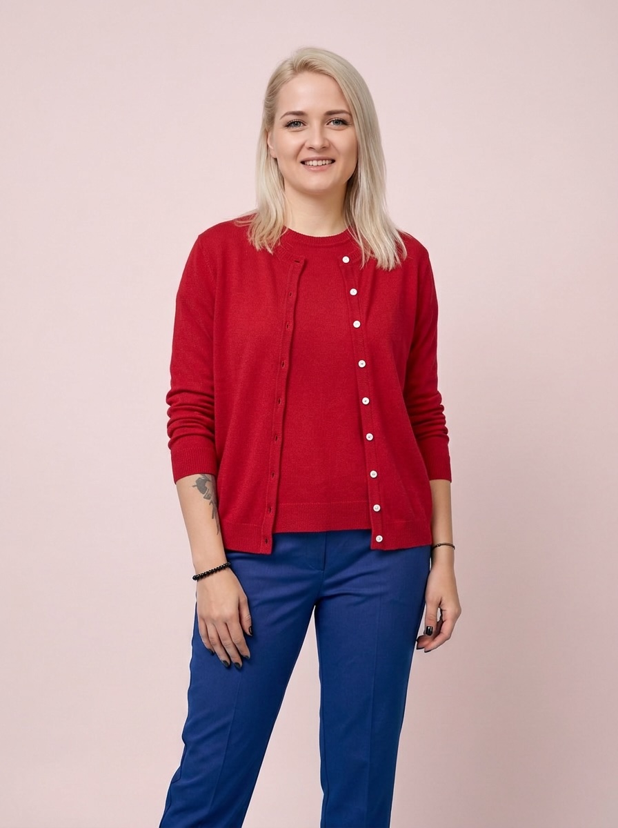 М’яка та приємна до тіла трикотажна тканина виготовлена із преміальної суміші кашеміру, бавовни та віскози, що забезпечує комфорт, повітропроникність і делікатну посадку по фігурі.