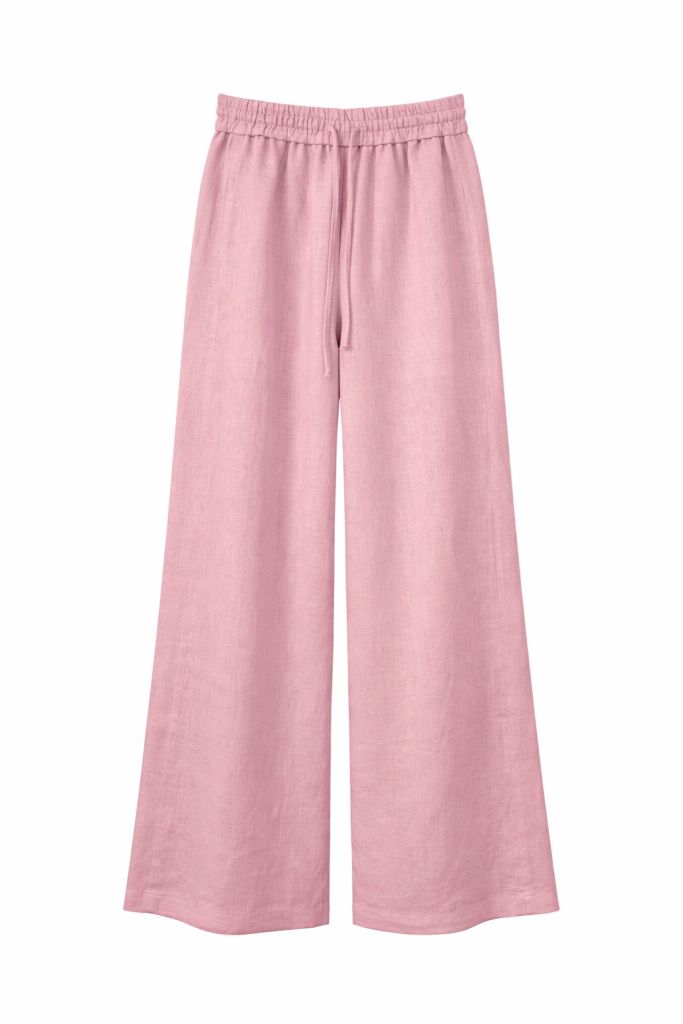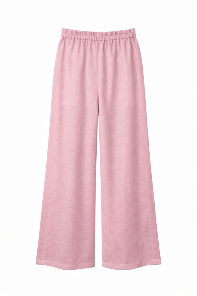 Жіночі лляні штани палаццо у пастельно-рожевому кольорі