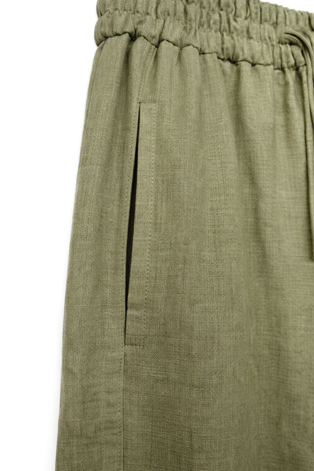 Для зручності передбачені кишені в бокових швах, які зберігають лаконічний вигляд виробу. Натуральний льон забезпечує відмінну повітропроникність, роблячи штани ідеальними для спекотних днів.