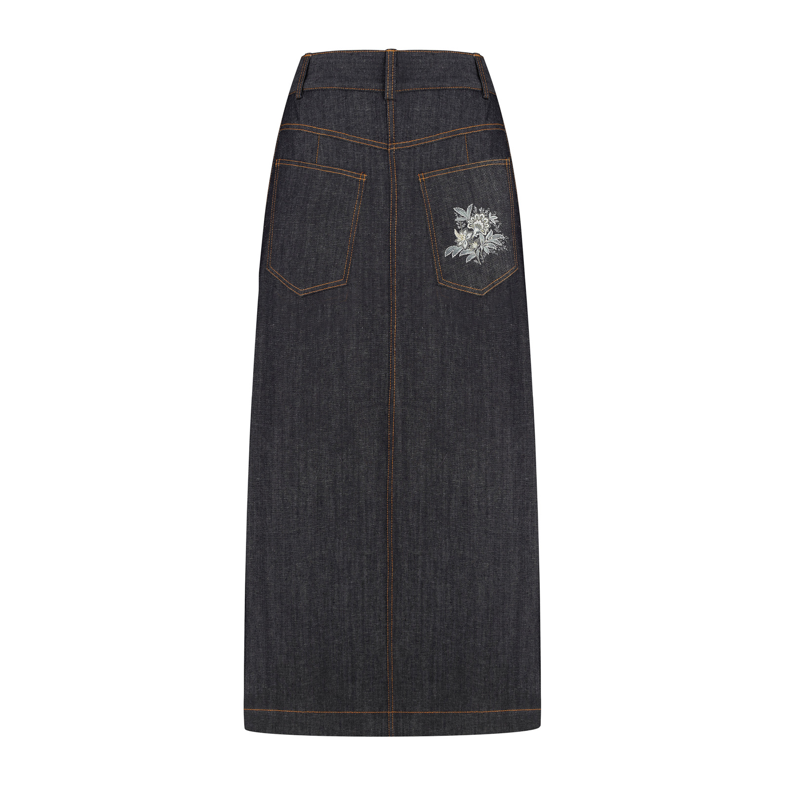 Джинсова спідниця максі з лампасами та фірмовим принтом на кишені - Denim Romance