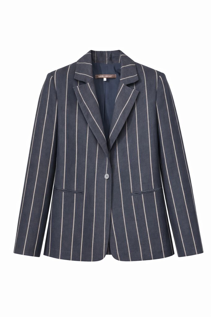 Виготовлений з натурального льону, жакет добре пропускає повітря та підходить для щоденного носіння. Модель ідеально поєднується зі штанами з тієї ж тканини, створюючи стильний костюм у фірмовому стилі Laura Ashley.