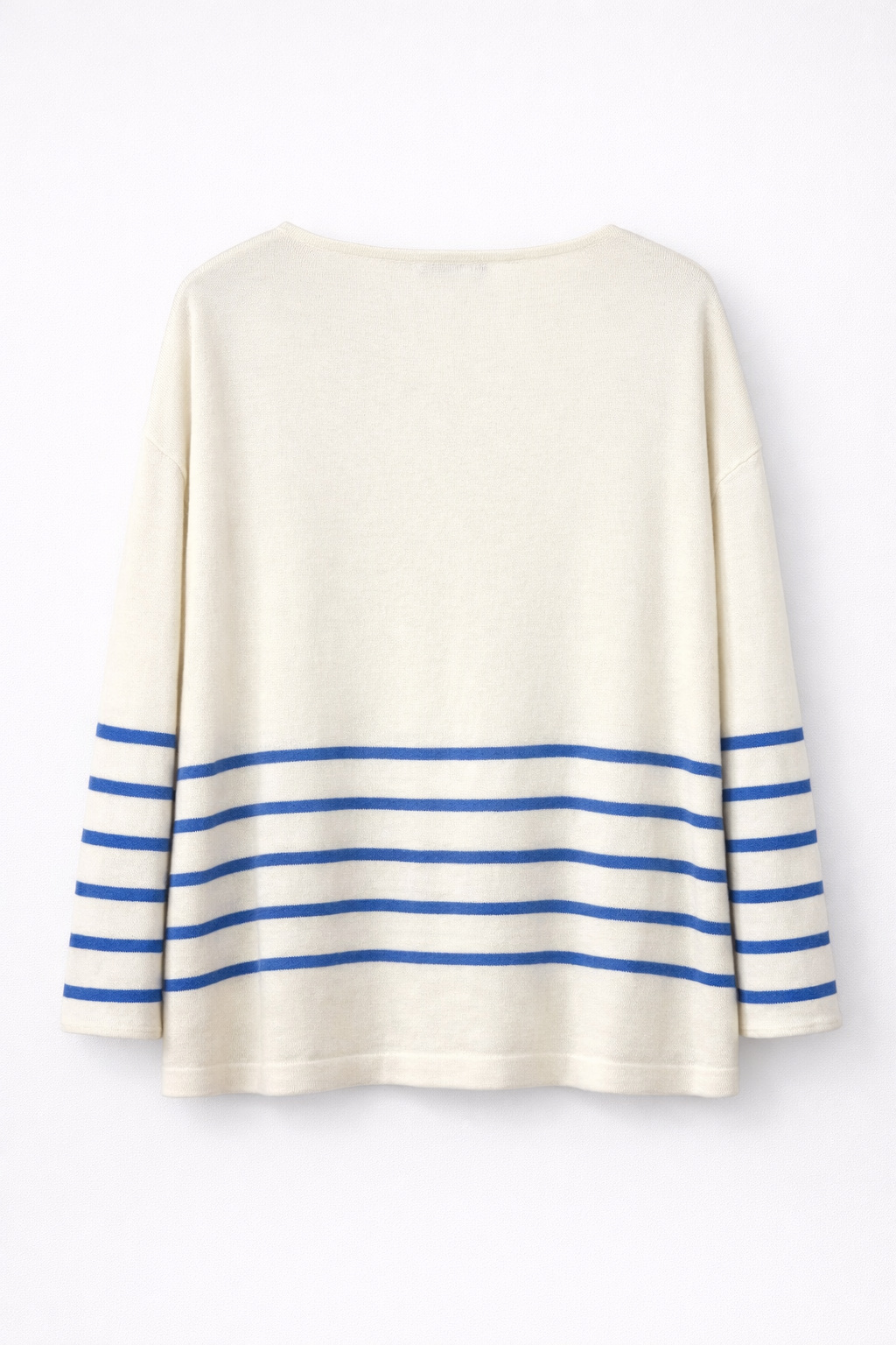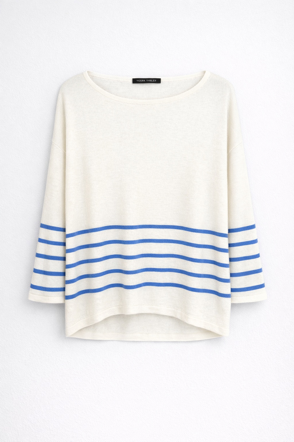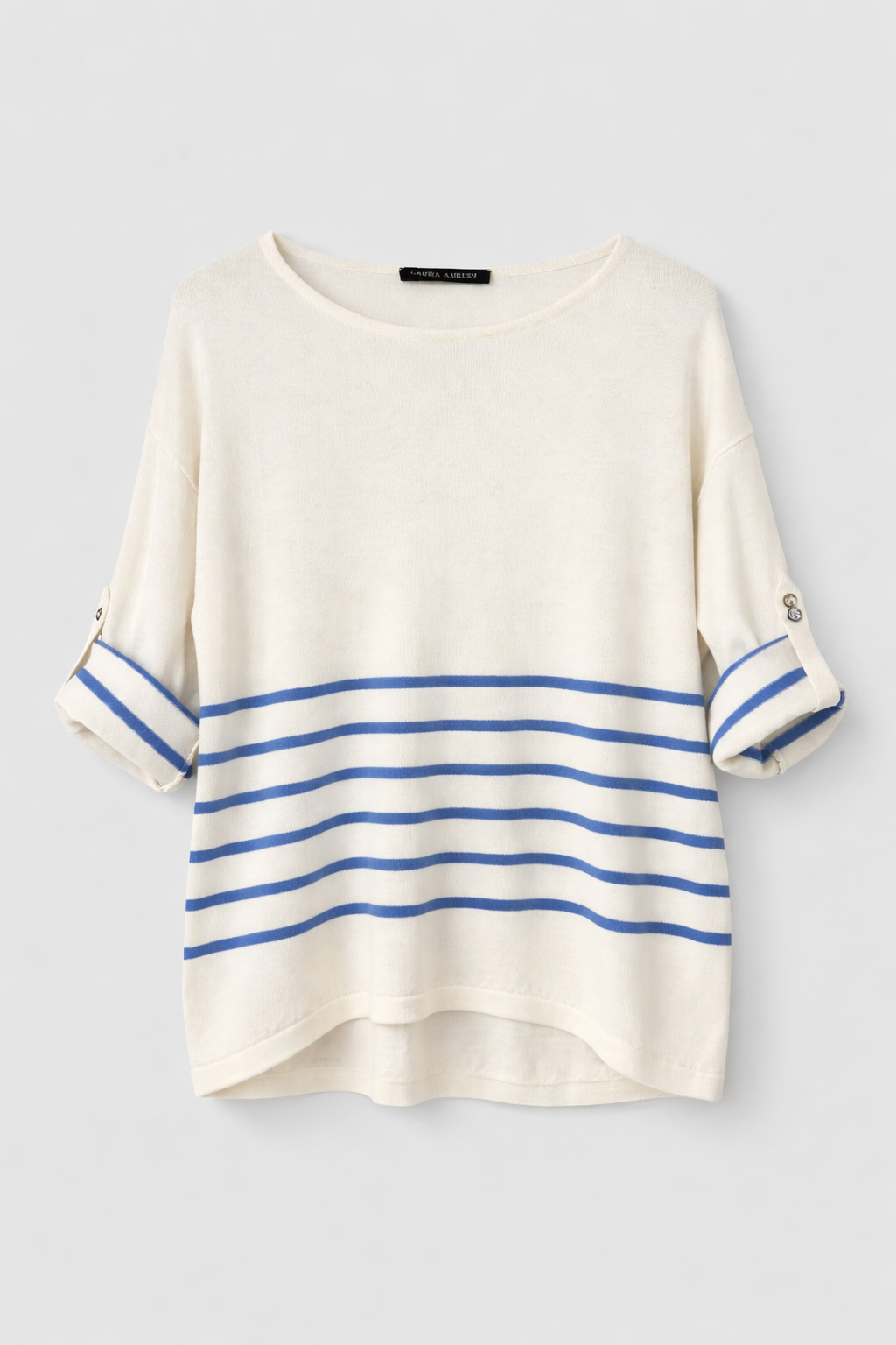 Жіночий пуловер з рукавом 3/4 у горизонтальну смужку з коллекції Enriched Classics — стильна модель у сучасному морському настрої.