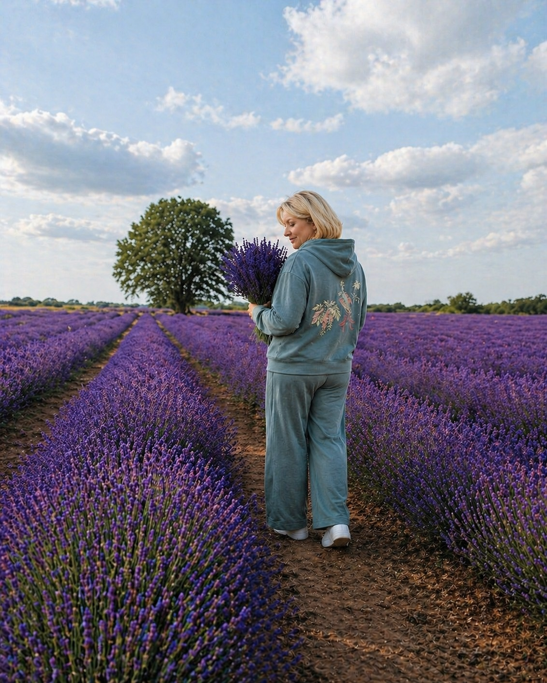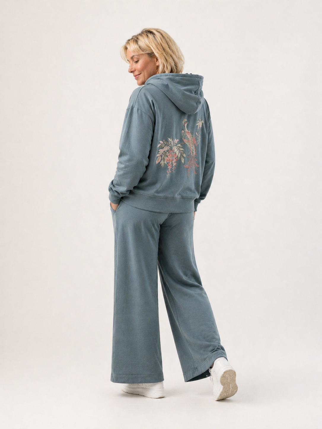 Глибокий благородний колір штормове море чудово поєднується з худі з однойменної колекції, створюючи стильний преміальний комплект у фірмовій естетиці Laura Ashley.