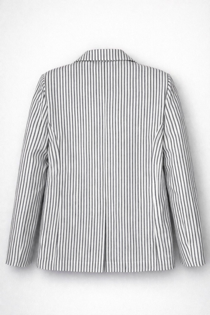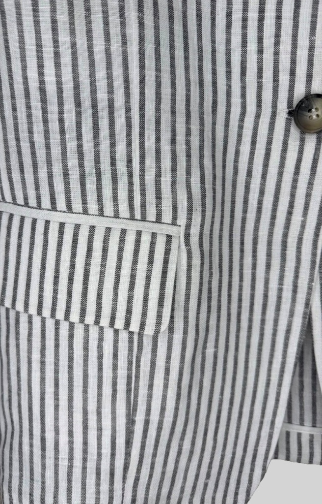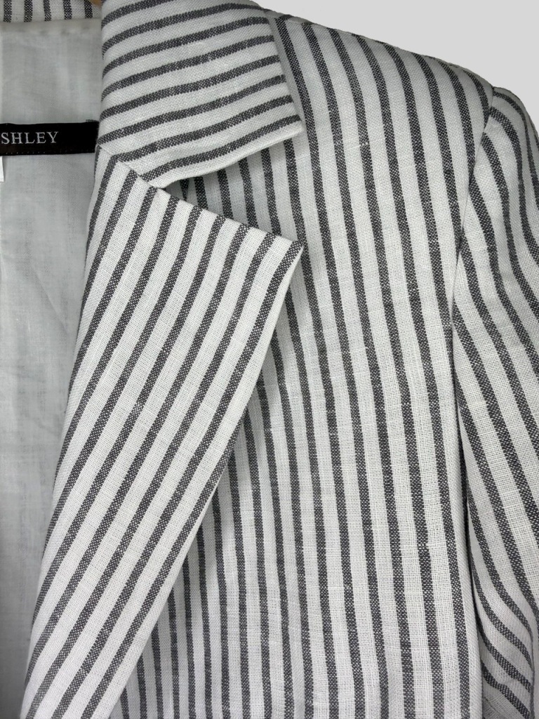 Жіночий лляний жакет у біло-сіру смужку від Laura Ashley — стильне поєднання елегантності та комфорту для сучасного гардеробу.