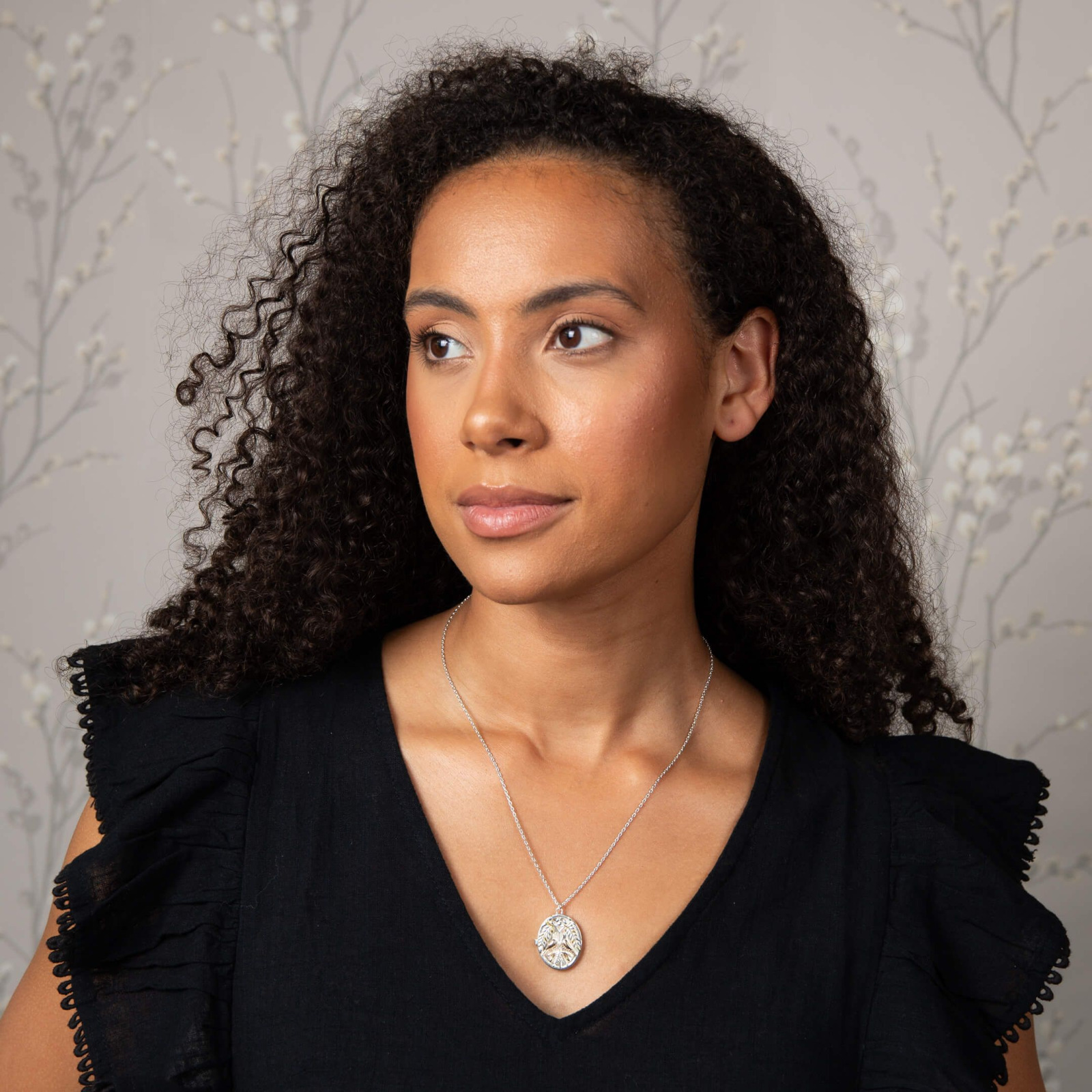 Цей чарівний медальйон, натхненний сезонним архівним принтом Лори Ешлі, прикрашений двома горлицями, зверненими одна до одної.