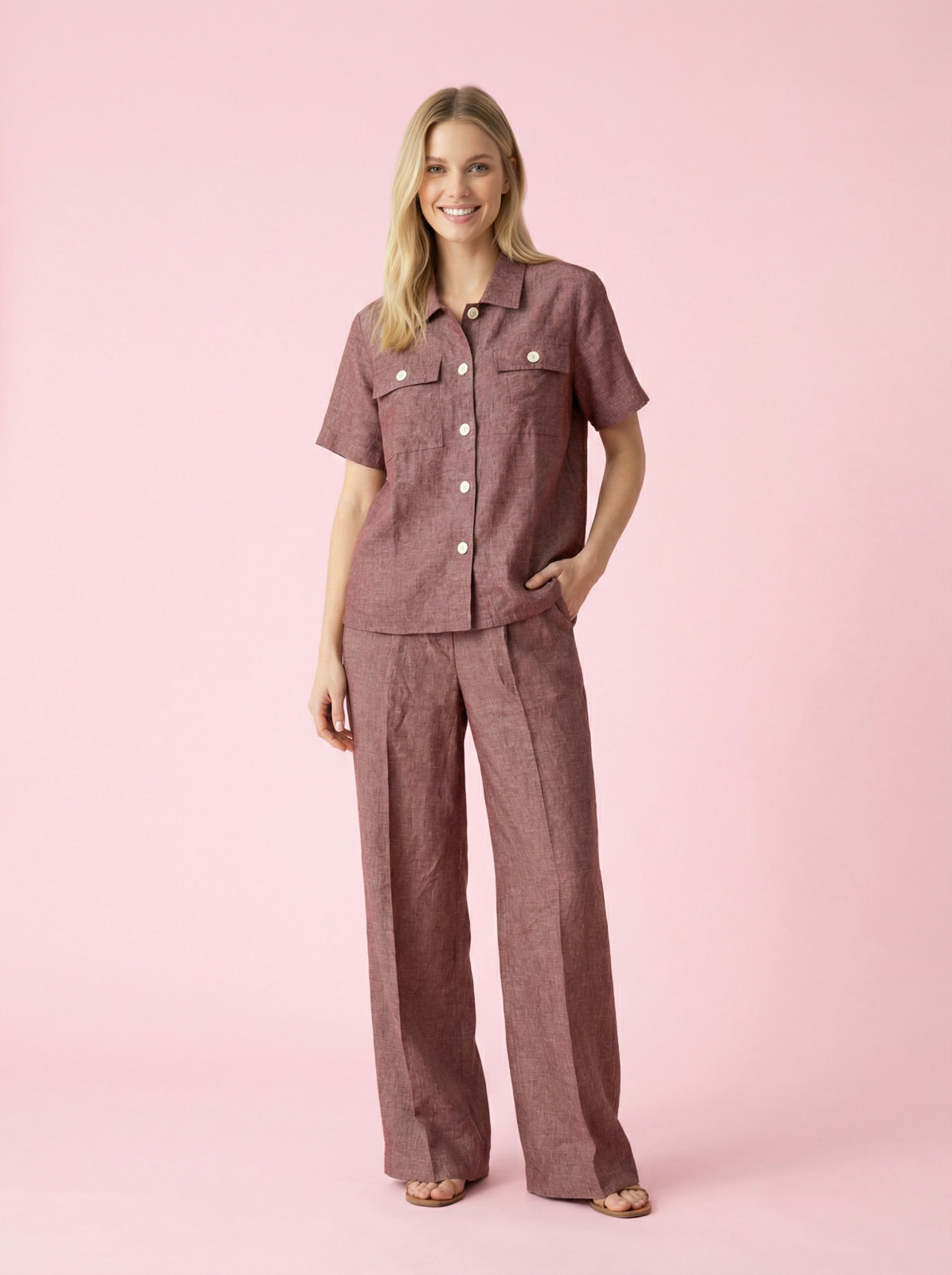 Натуральна лляна тканина добре пропускає повітря та дарує відчуття легкості впродовж дня.