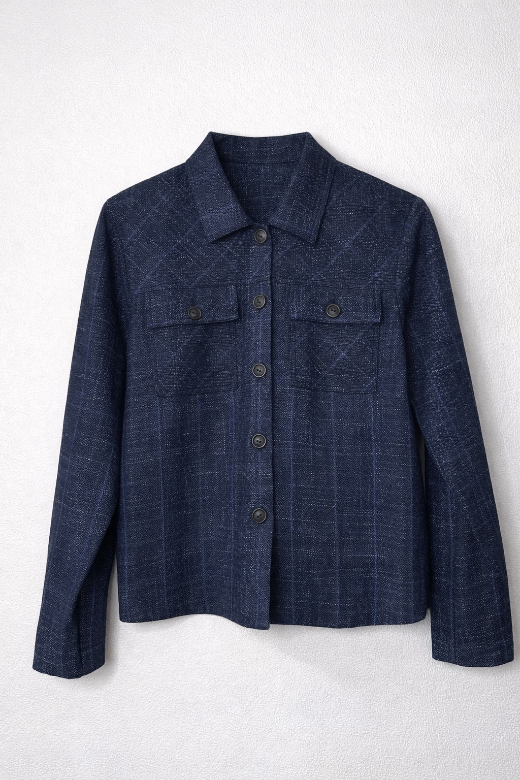 Накладні кишені з клапанами додають практичності й стилістичного акценту. Жакет виготовлений із якісної суміші вовни, бавовни та та льону, що робить його приємним на дотик і зручним у носінні.