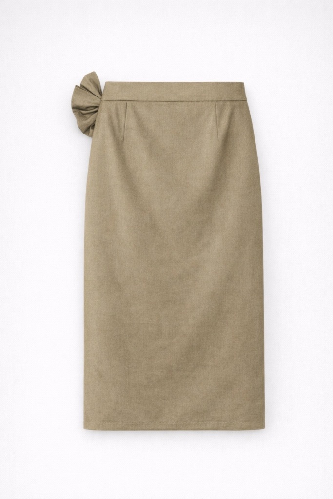 М’яке драпірування по передній частині спідниці формує гармонійний силует і додає витонченості посадці.