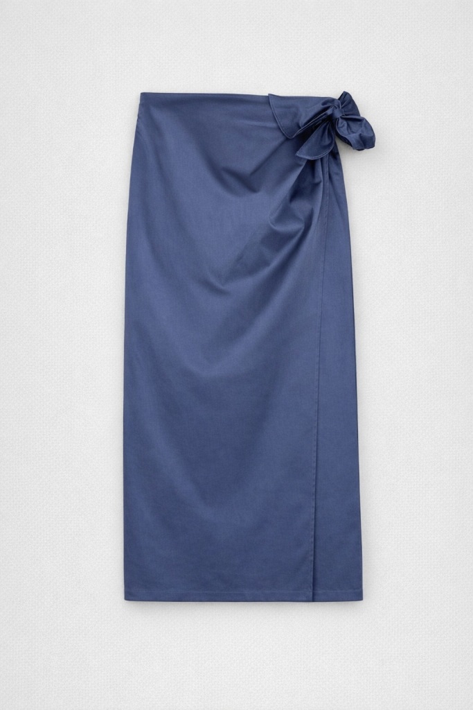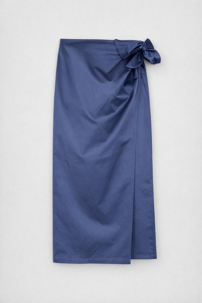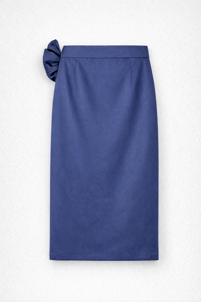 Особливим акцентом є м’яке драпірування по передній частині спідниці, яке формує елегантну лінію та допомагає створити більш витончений і гармонійний силует.