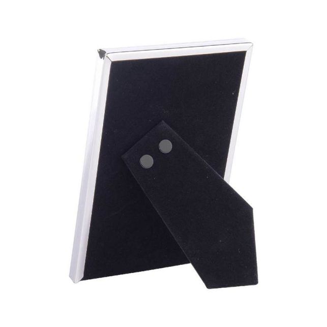 Каркас виготовлений із сріблястого металу, фотографія під захистом скла, чорна оксамитова підставка зі зворотного боку, дозволяє розмістити рамку як у портретному, так і в альбомному положенні.