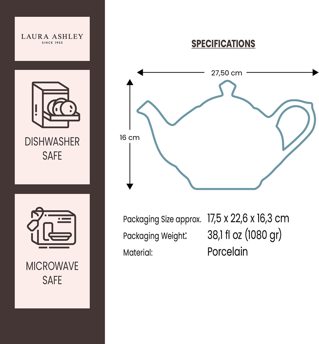 Порцеляновий чайник об’ємом 1,6 літра, який не тільки збереже ваш чай теплим, але й буде приємним на журнальному столику: це чайник із принтом китайської троянди з колекції Blueprint від Лори Ешлі. Чудовий квітковий мотив повністю вписується в класичний стиль і робить ваші моменти чаювання надзвичайно розкішними. Справжня принадність на вашій кухні! Налийте чашку чаю в чашки із Blueprint Collectables із таким самим або іншим принтом. Комбінуйте, поки не знайдете свій власний стиль.