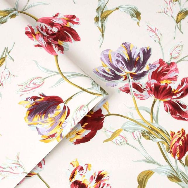 Класичний дизайн Gosford Meadow від Лори Ешлі з великою кількістю квітучих тюльпанів у буйній барвистій композиції робить сміливу заяву в блідо-журавлинному кольорі. Раппорт малюнка 64 см Всі шпалери Laura Ashley надруковані у Великій Британії та наклеюються на стіни; просто наклейте стіну, прикладіть шпалери і дайте висохнути.