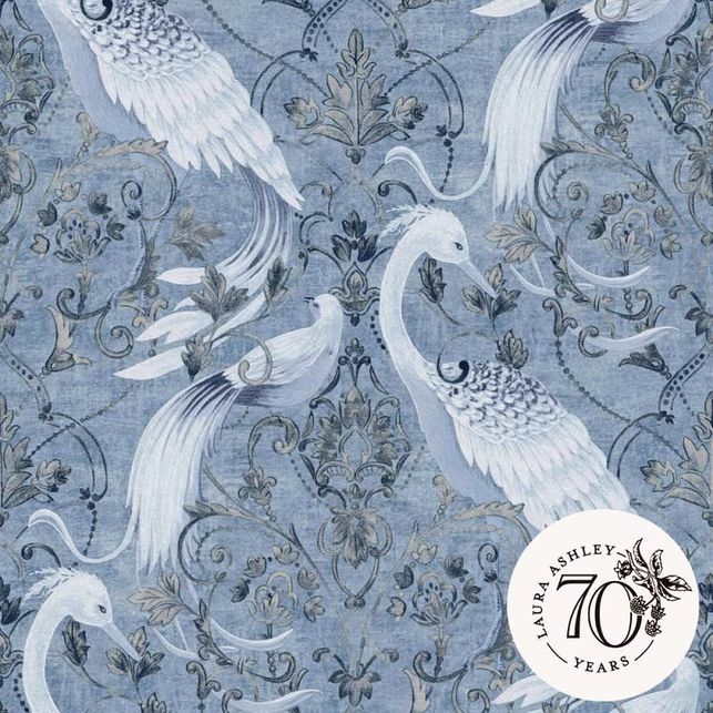 Цей романтичний дамаський принт був натхненний французькими класичними тональними візерунками. Трегарон має прикраси з бісеру, завитками стилізованого листя і квітів, оточеними журавлями, що утворюють хвилеподібні криві форми з віяловими перистими хвостами. просто наклейте стіну, прикладіть шпалери і дайте висохнути. Для досягнення найкращих результатів рекомендуємо використовувати шпалерний клей Laura Ashley.