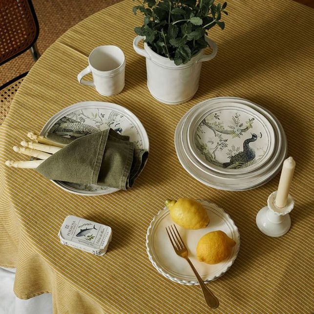 Міцні, але елегантні керамічні вироби з нестандартним зовнішнім виглядом ручної роботи та вишуканими деталями. Асортимент Artisan Collectables поповнився серією унікальних тарілок з одним із найзнаковіших принтів Лори Ешлі: «Бельведерський павич». Цей стилізований принт можна використовувати разом з іншими предметами інтер'єру (шпалери, штори, постіль), щоб створити еклектичний і, таким чином, типово англійський життєвий простір. Ці незвичайні тарілки включають все, що так любила Лора Ешлі: природу, птахів і квіткові елементи, і ідеально підходять для подачі ваших улюблених страв англійського сніданку. Кожна тарілка виготовляється вручну, тому кожен виріб унікальний.