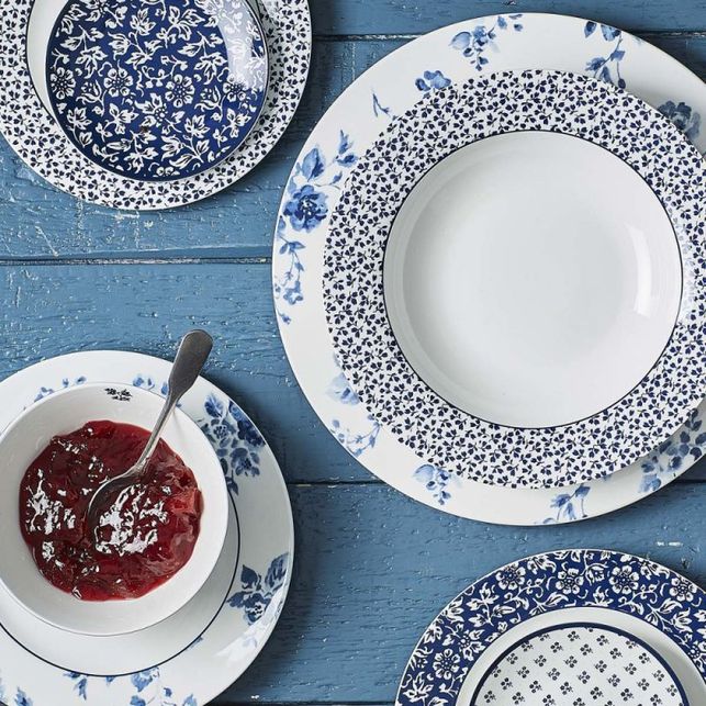 Велика вечеря складається з двох речей: смачної їжі та красиво накритого столу. Якщо ви хочете, щоб їжа була смачною, Лора Ешлі надасть посуд. Ця велика обідня тарілка ідеально підходить для основної страви. Ви подаєте вечерю з кількох страв? Тоді ця тарілка також чудово підійде як нижня підставка. Обідня тарілка є частиною сервісу колекціонування Blueprint. Цей гарний посуд створений за мотивами перших дизайнів Лори Ешлі 50-х років. Синьо-білі візерунки у чотирьох лініях посуду створюють позачасовий вигляд.