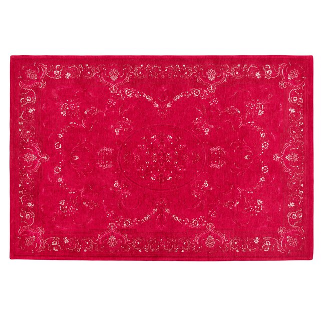 Тонкий килим великого розміру, насиченого бордового кольору. Малюнок цього розкішного килима наповнений східними мотивами і обрамлений по периметру.