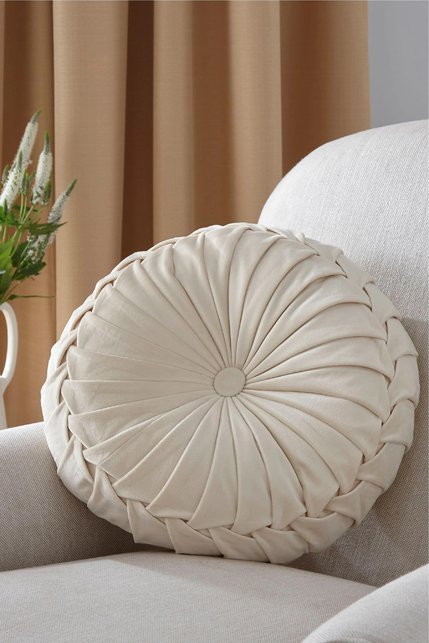 Кругла декоративна подушка – чудовий аксесуар, за допомогою якого можна зробити меблі набагато затишнішими, комфортнішими та красивішими. Модель виготовлена з якісного матеріалу з однотонним дизайном. Бренд Laura Ashley випускає продукцію високої якості з відмінним пошиттям. Кругла подушка виконана з полотна на основі 100% поліестеру. Цей виріб відрізняється відмінною міцністю та тривалим терміном експлуатації. Чудовий дизайн у вигляді поєднання складок полотна, приємна пастельна гама та бездоганність виконання приємно порадують кожного.