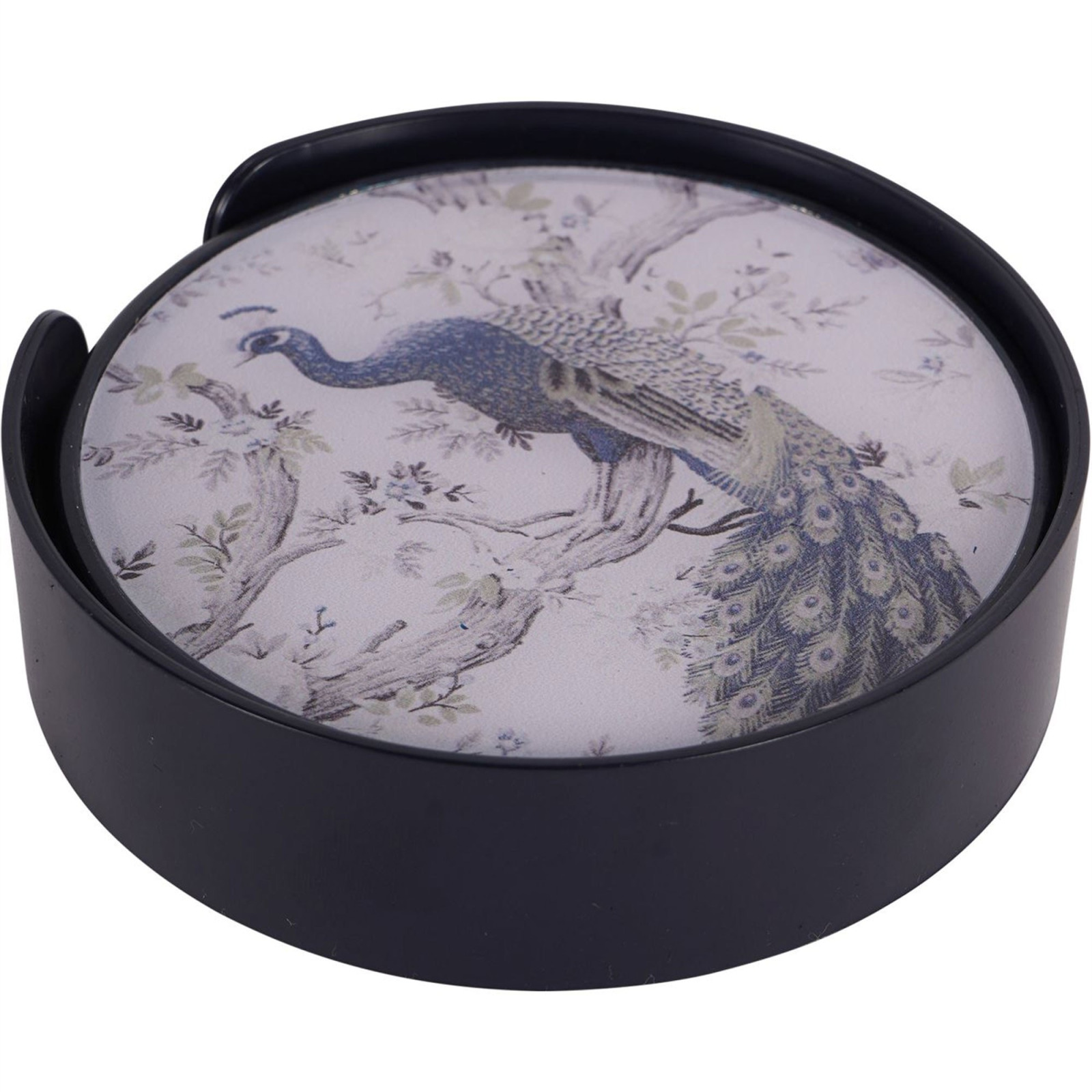 Belvedere Peacock Print: Набір із 4 підставок для напоїв у стильному синьому тримачі з візерунком Laura Ashley Belvedere Peacocks. Ці підставки стануть чудовим доповненням до вашої кухні або вітальні, особливо якщо вони вже прикрашені тканиною, шпалерами або подушками Belvedere. Вони є частиною колекції Belvedere, яка також включає підноси та інші аксесуари з аналогічним дизайном.
