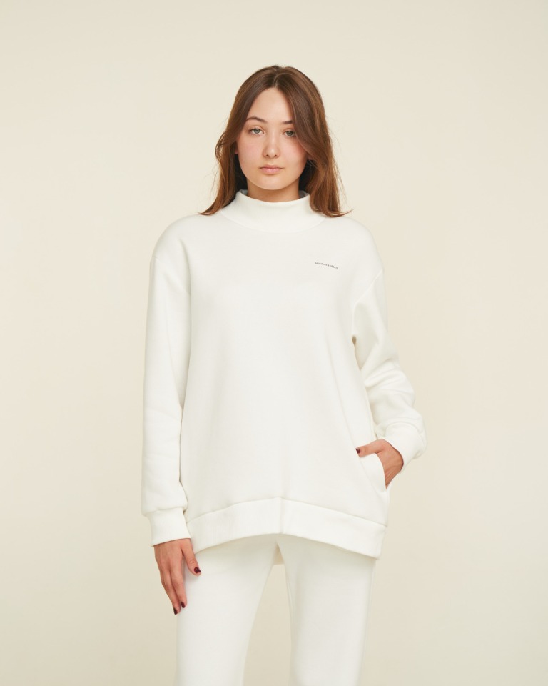 Толстовка оверсайз тепла та затишна, з простою та позитивною аффірмацією “Meditate & Create” написаною зверху. Будучи частиною колекції лаунж "Аеропорт", вони служать прекрасною сполучною ланкою між світом комфорту та стилю, дозволяючи власнику почуватися елегантно та затишно. У комплект до толстовки можна підібрати брюки (молочні, сірі, темно-сині), щоб створити ідеальний костюм для прохолодного сезону.