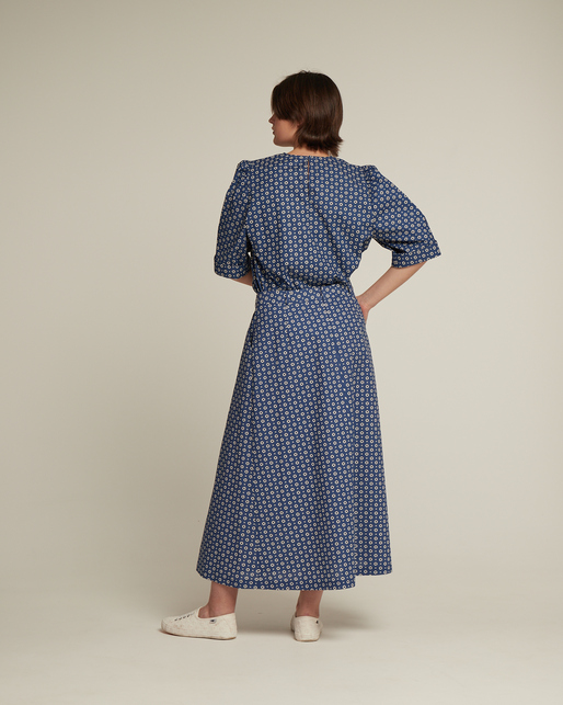 Бавовняна спідниця міді з колекції Софія. Виготовлені з бавовни «Петчворк» у двох кольорах: Синій та Кремовий.