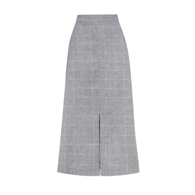 Елегантна сіра спідниця з поясом від бренду K&A зможе стати чудовою основою для формування вишуканого та лаконічного образу. Вона ніяк не декорована, прикрасою є лише розріз ззаду та ледь помітний геометричний візерунок на тканині. Завдяки такому стриманому дизайну спідницю з легкістю можна комбінувати з яскравим верхом, в результаті чого можуть вийти вельми цікаві та ефектні образи. Спідниця приталена, завдяки натуральним тканинам, що стримують, привабливо облягає фігуру. Доповнюючи вбрання аксесуарами та деталями, у такій речі можна з'явитися і на світському заході, і на вечірці.