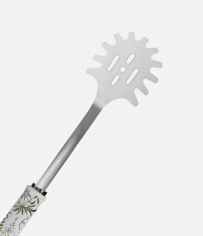 Надайте сервіруванню пасти особливого шарму з елегантним сервером для спагетті від Laura Ashley. Керамічна ручка прикрашена фірмовим рослинним візерунком Parterre у витонченому кольорі шавлії, що надає інструменту неповторного стилю та ніжної естетики. Міцна робоча частина з нержавної сталі — зручно подає спагетті та інші види пасти. Керамічна ручка з принтом Parterre — поєднання краси, зручності та фірмового стилю. Створений для сервірування з любов’ю — ідеально підходить для сімейних обідів та святкових вечерь. Цей витончений аксесуар перетворює звичайну подачу страв на справжнє задоволення — функціональність і британська елегантність у кожній деталі.