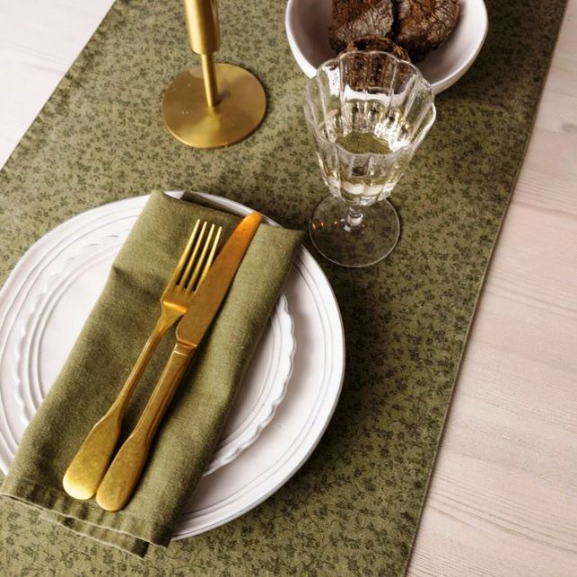 Двостороння доріжка для сервірування столу з тканини колекції Wild Clematis, з квітковим візерунком з одного боку та кольору зеленої шавлії з іншого, вона легко прикрасить ваш стіл і додасть йому святкового настрою. Улюблені, вінтажні принти Laura Ashley, надихнуть вас створити неповторний інтер'єр вашої кухні, додадуть стилю та затишку. Також ви зможете підібрати в наших магазинах та інші аксесуари із серії Kitchen Linen для сервірування вашого столу. Ця доріжка для сервірування столу від Laura Ashley стане чудовим подарунком для ваших близьких та друзів.