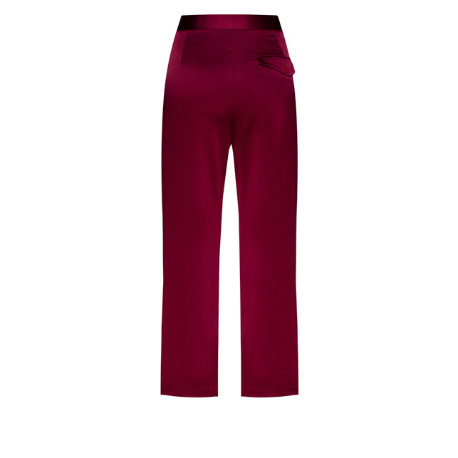 Стильні брюки від бренду K&A глибокого бордового кольору - справжня знахідка для жінок, які віддають перевагу точним лініях і правильним силуетам. Штани виготовлені з якісного шовку малбері, який поєднується з невеликою кількістю спандекса. Склад виробу є гарантією зносостійкості брюк і їх розкішного зовнішнього вигляду.