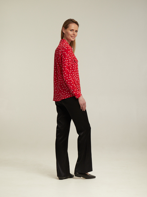 Шовкові чорні брюки від ТМ K&A з кльошем від коліна відрізняються ефектним зовнішнім виглядом і гарною сполучуваністю з іншими виробами. Вони підійдуть і для створення повсякденного образу, і для ділового. Ошатна блуза, стильний піджак або теплий светр - з цими оригінальними брюками буде поєднуватися практично все. А якщо додати до цього той факт, що чорний колір відрізняється універсальністю, то можна експериментувати з самою різною кольоровою гамою. Зручна посадка приховає недоліки фігури, а фасон візуально зробить фігуру стрункішою.