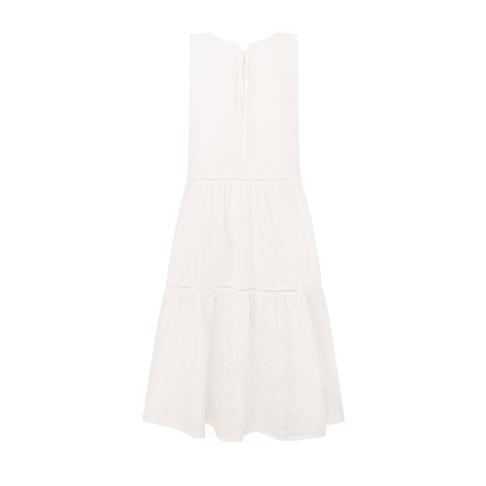 Біла сукня-сарафан Laura Ashley зі 100% перфорованої бавовни - як дихання літа. Повітряні волани створюють романтичний силует, а ажурна тканина підкреслює ніжність та свободу. Легке, як вітер, та жіночне, як традиції бренду. Лімітована модель для тих, хто любить сонце, естетику та рух. Лімітована капсула, виготовлена в Україні за ліцензією