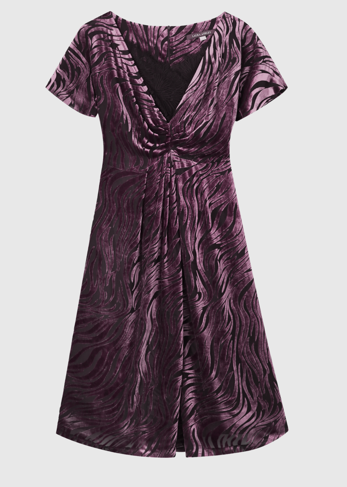 Вечірня сукня з фіолетового шовку-деворе – витончена модель у фірмовій естетиці Laura Ashley, створена для урочистих заходів, святкових виходів та особливих випадків.
