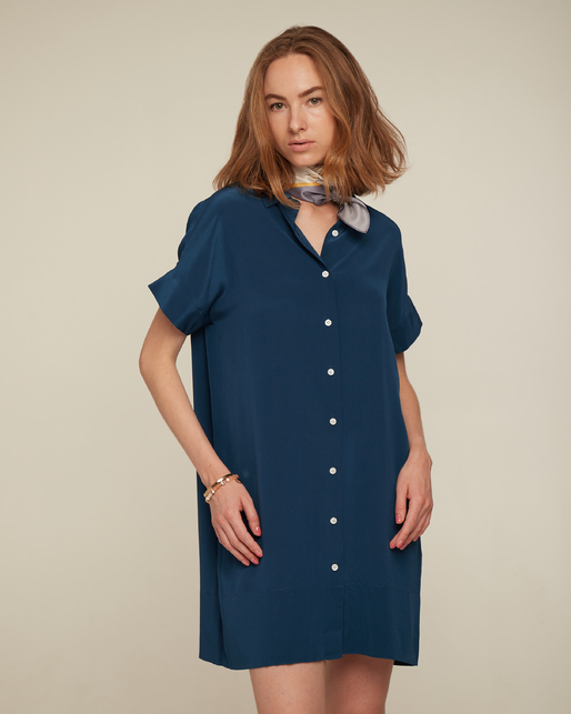 Простора шовкова сукня насиченого синього кольору від K&A стане ефектним вибором для кожної леді. Вона здатна підкреслити переваги та приховати недоліки фігури. Приємний до тіла натуральний шовк подарує відчуття комфорту, а універсальний колір підійде жінкам будь-якого віку та комплекції. Легка сукня обов'язково сподобається і вагітним жінкам — вона не стягує, не сковує рухів та надає вигляду гармонійності. Найкраще підібрати до цієї шовкової сукні K&A зручні босоніжки або туфлі на невеликих підборах. До виробу можна підібрати кардиган або жакет, і образ вийде по-справжньому жіночним.
